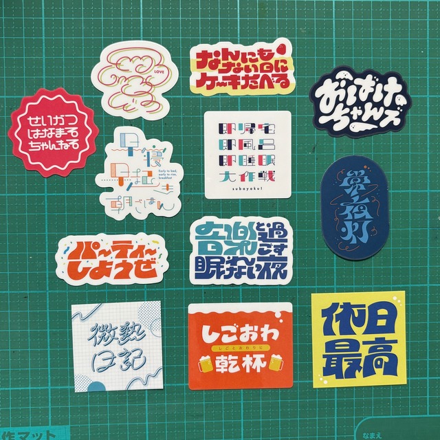 いろいろな耐水ステッカー! (「休日最高」のみ非耐水です)