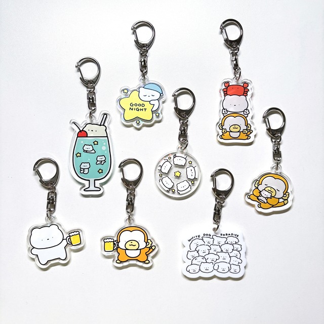いろいろな種類のアクリルキーホルダーです。 種類名はキーホルダー周辺に記載しています。